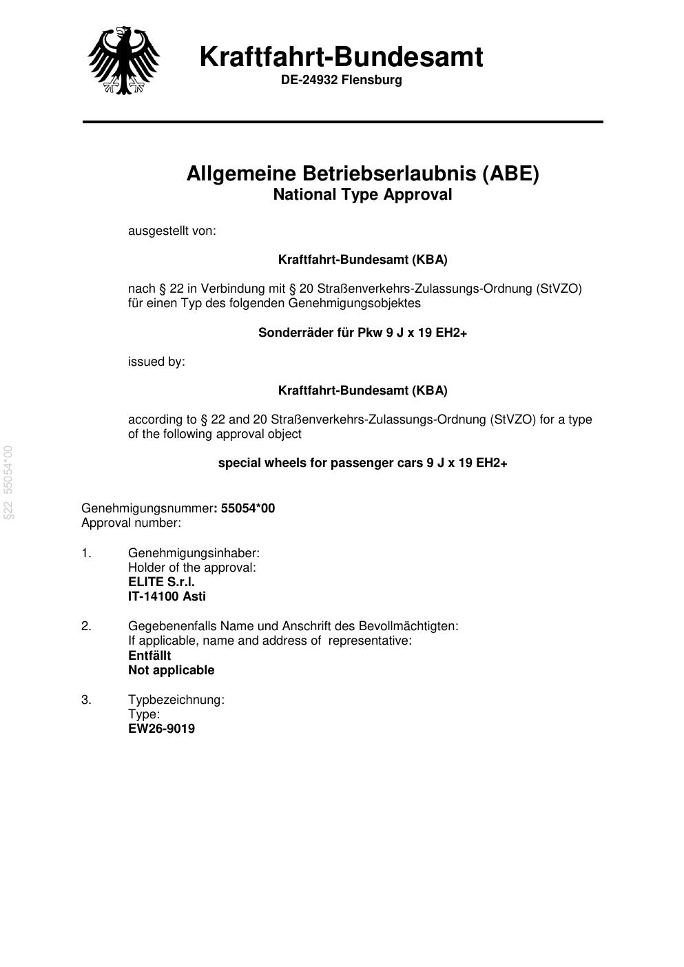 Dieses Gutachten (abe) bezieht sich auf die Alufelge ATS UN8080 in der Ausführung 9Jx19 ET 0, Mittenloch 0 mm (KBA 55054). Im PDF findest du typischerweise zulässige Reifengrößen, Auflagen/Anbauhinweise und – je nach Dokument – Hinweise zur Eintragung.