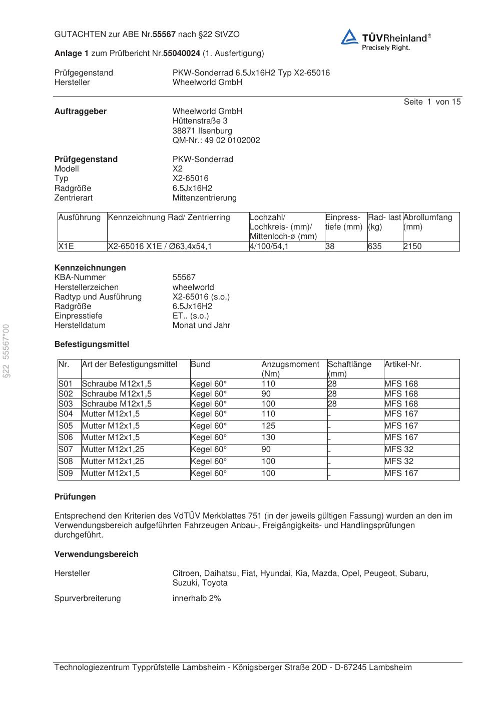 Felgengutachten / abe für Alufelgen ATS X2-65016 (6.5Jx16 ET 0, Mittenloch 0 mm) mit KBA 55567 (Zertifikatsnummer 55567). Hier kostenlos als PDF herunterladen. Der Download-Link ist 24 Stunden gültig und kann bis zu zwei Mal verwendet werden.