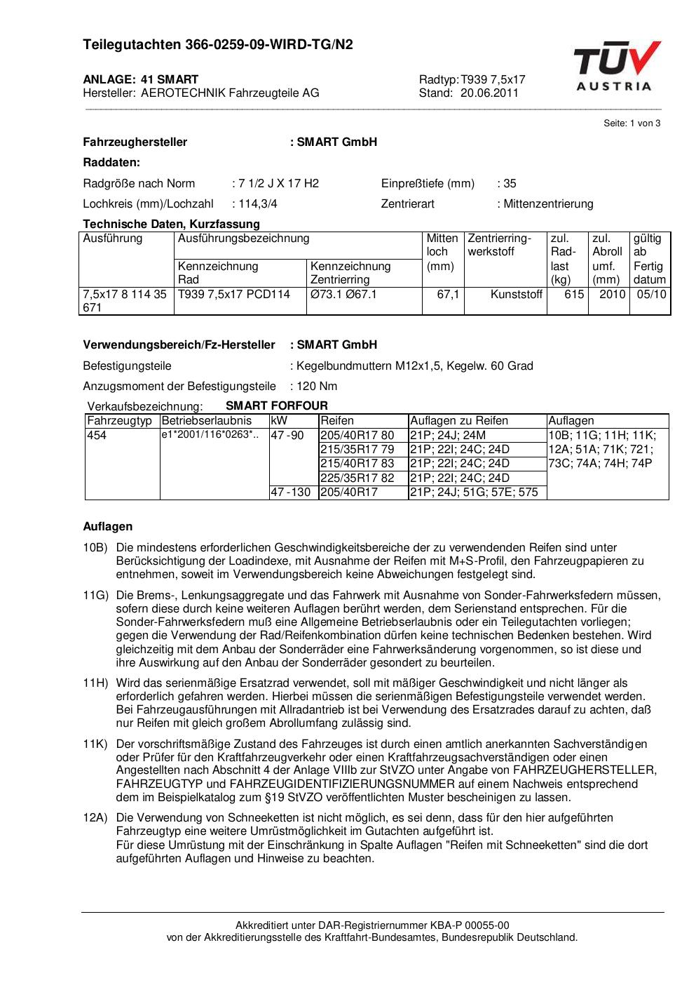 teilegutachten 366-0259-09 AEROTECHNIK T939 7,5x17