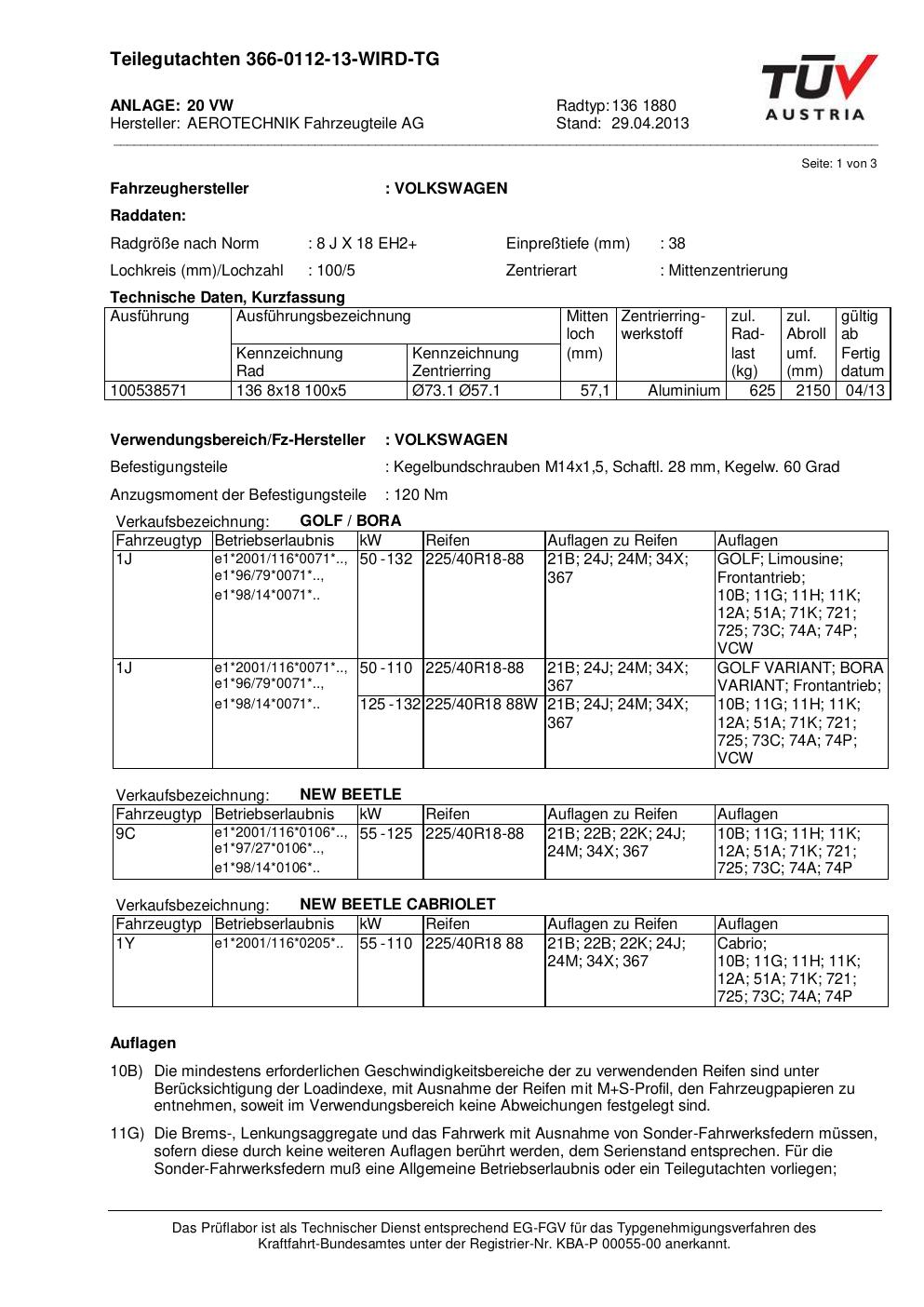 teilegutachten 366-0112-13-wird-tg AEROTECHNIK Fahrzeugteile AG 136 1880