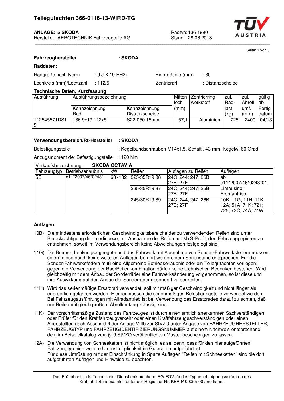 teilegutachten 366-0116-13 AEROTECHNIK Fahrzeugteile AG 136 1990