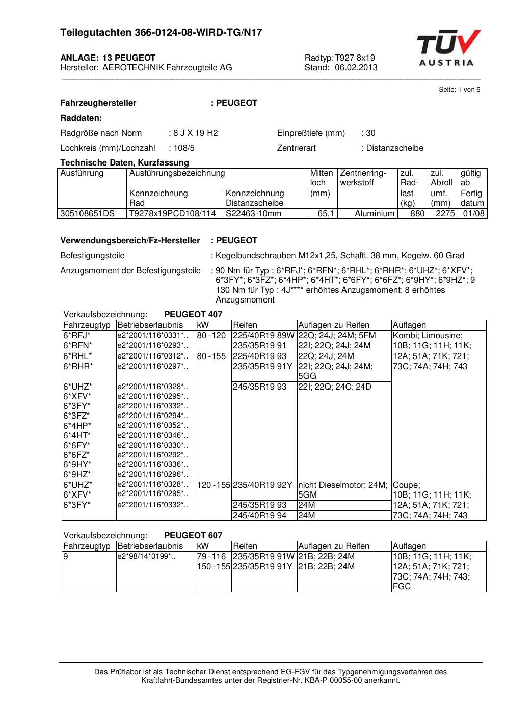 teilegutachten 366-0124-08 AEROTECHNIK T927 8x19