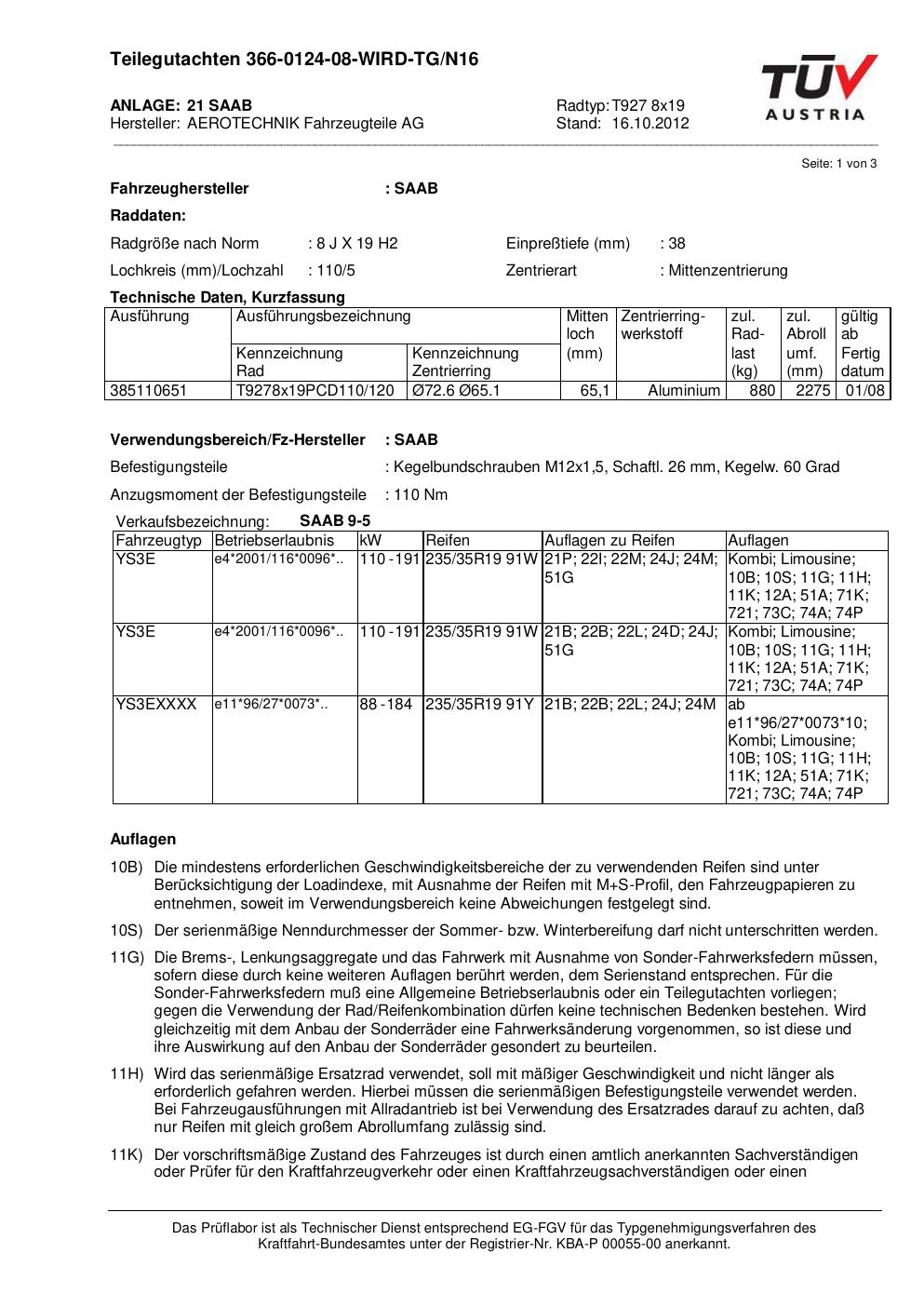 teilegutachten 366-0124-08 AEROTECHNIK T927 8x19