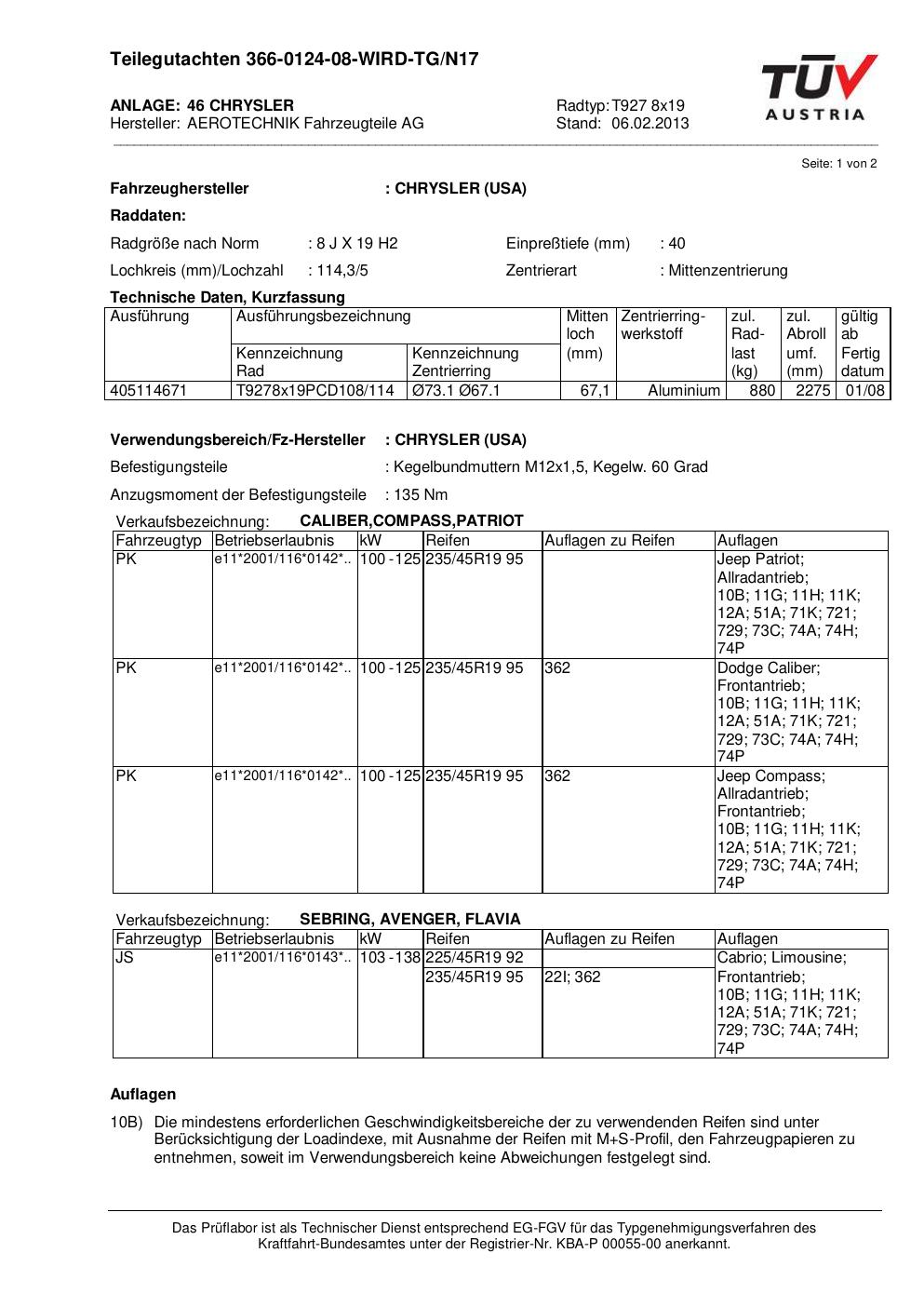 teilegutachten 366-0124-08 AEROTECHNIK T927 8x19