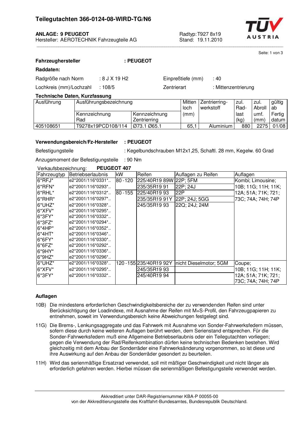 teilegutachten 366-0124-08 AEROTECHNIK T927 8x19