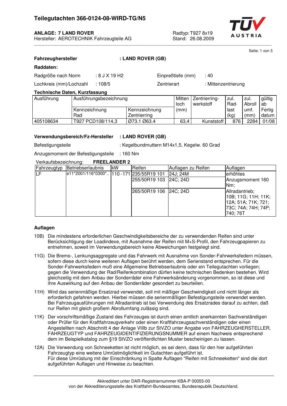 teilegutachten 366-0124-08 AEROTECHNIK T927 8x19