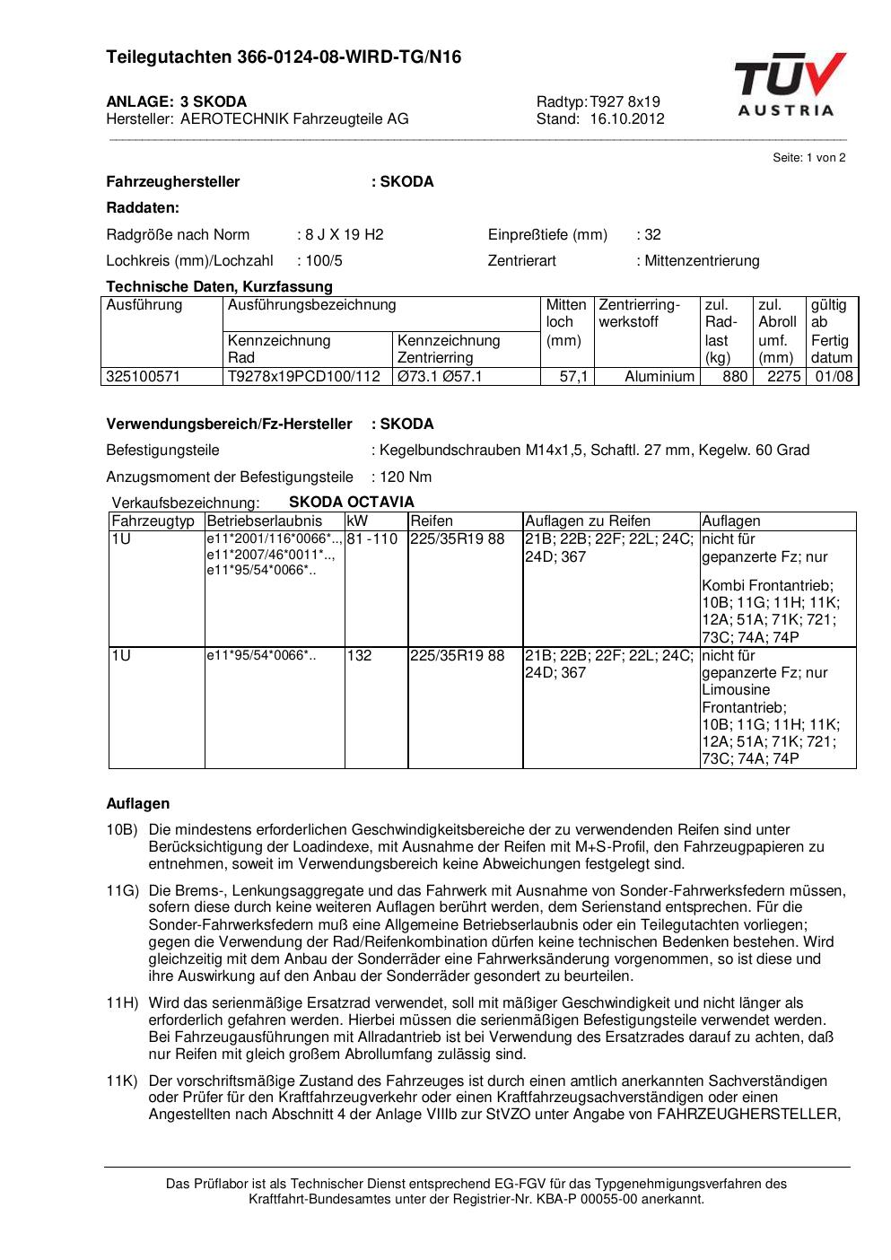 teilegutachten 366-0124-08 AEROTECHNIK T927 8x19