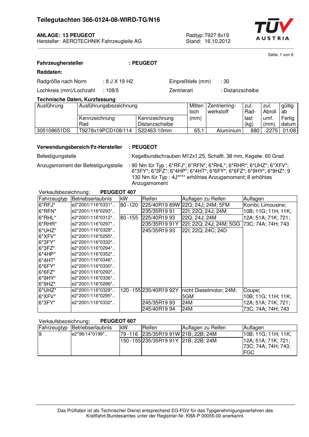 teilegutachten 366-0124-08-wird-tg-n16 AEROTECHNIK T927 8x19