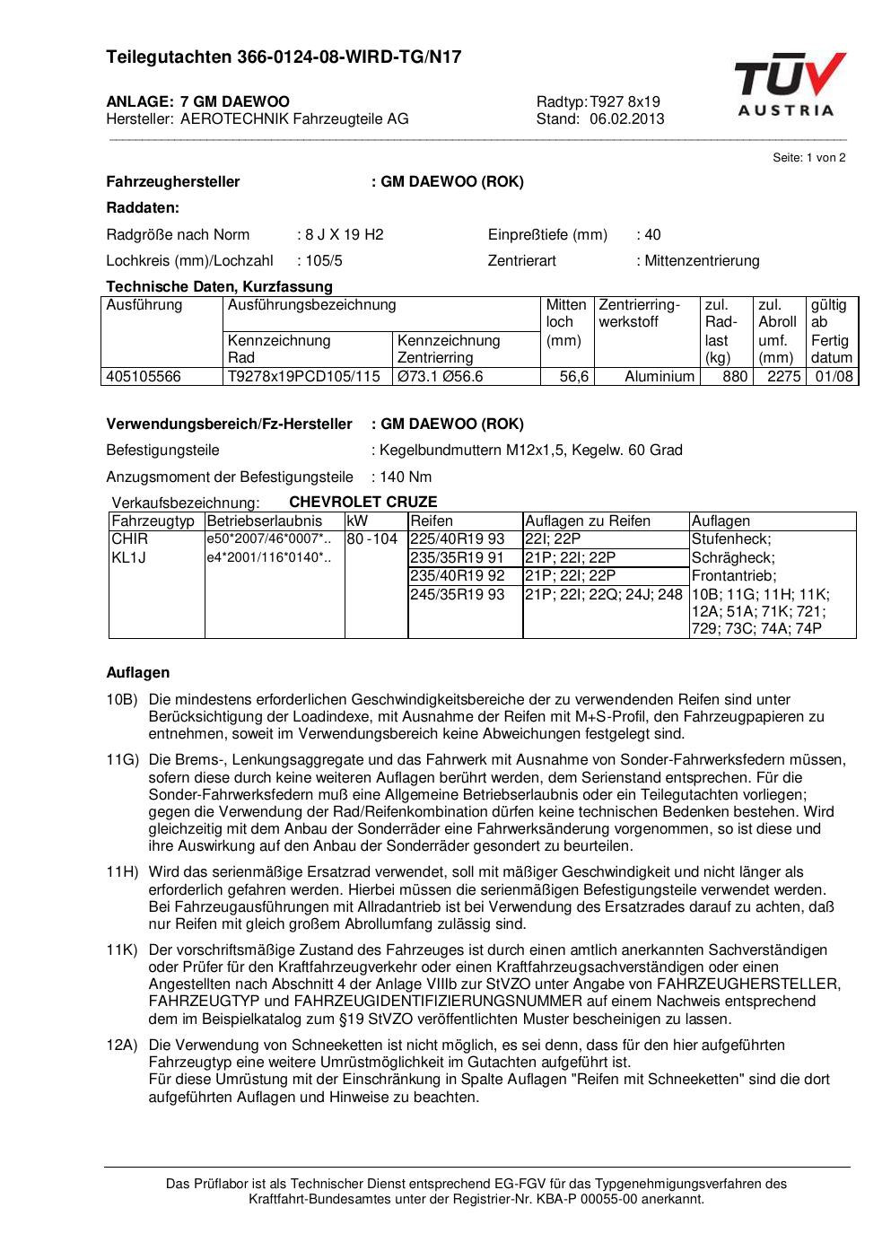 teilegutachten 366-0124-08-wird-tg-n17 AEROTECHNIK T927 8x19