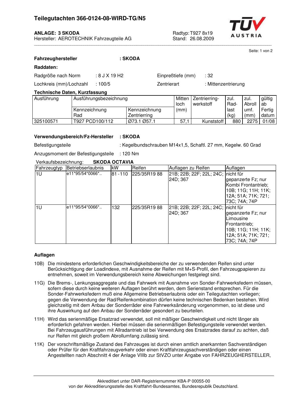 teilegutachten 366-0124-08-wird-tg-n5 AEROTECHNIK T927 8x19