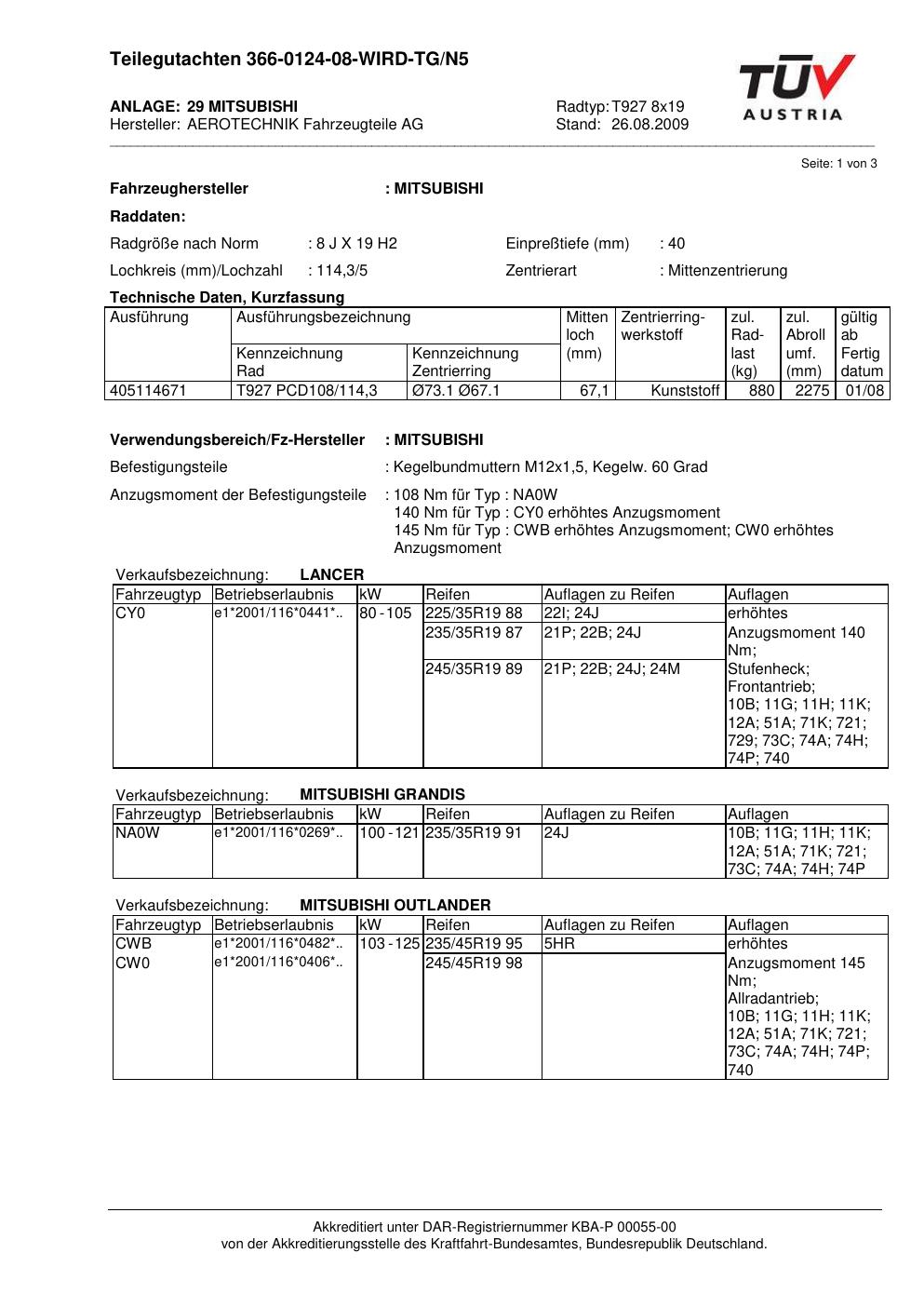 teilegutachten 366-0124-08-wird-tg-n5 AEROTECHNIK T927 8x19