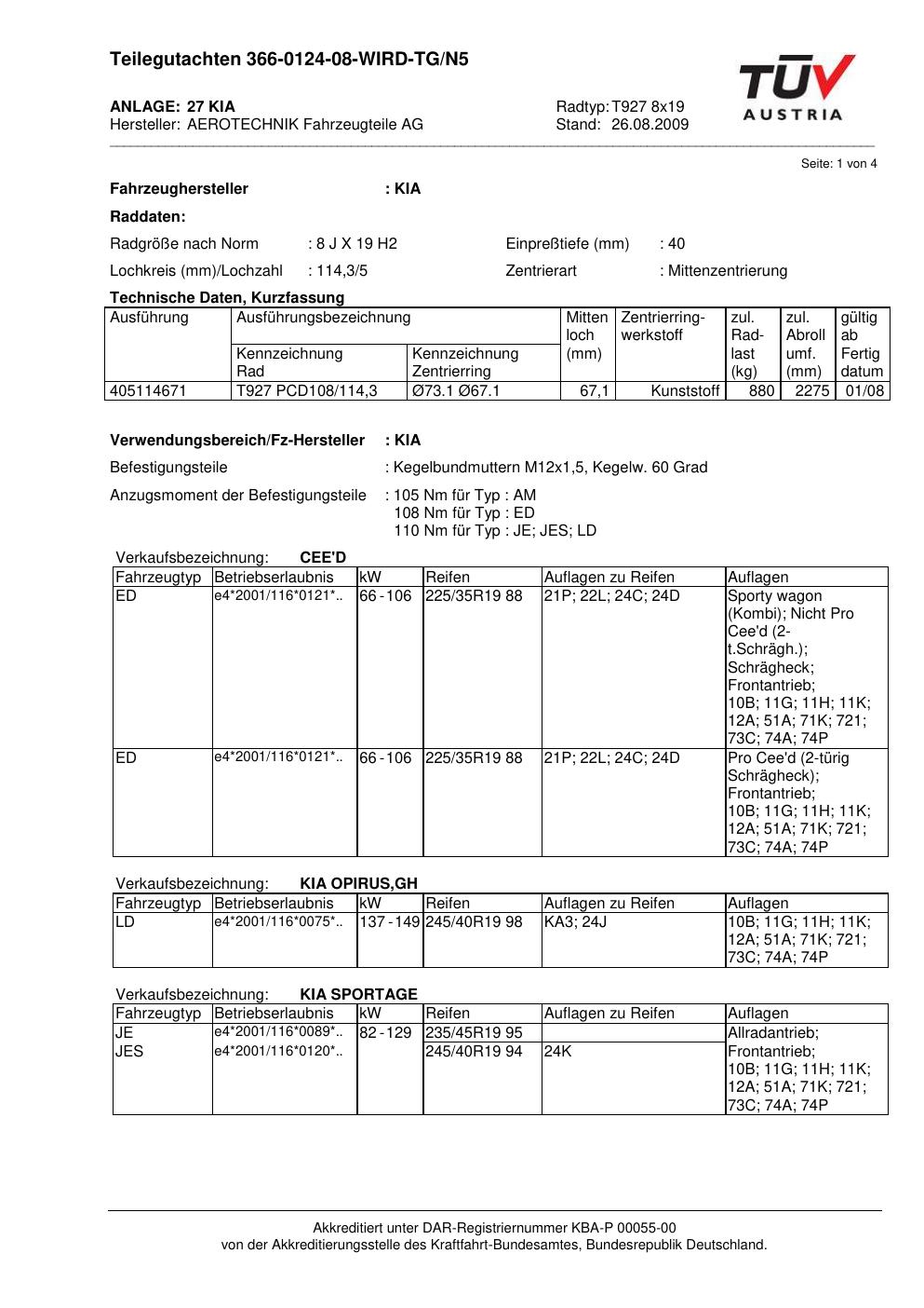 teilegutachten 366-0124-08-wird-tg-n5 AEROTECHNIK T927 8x19