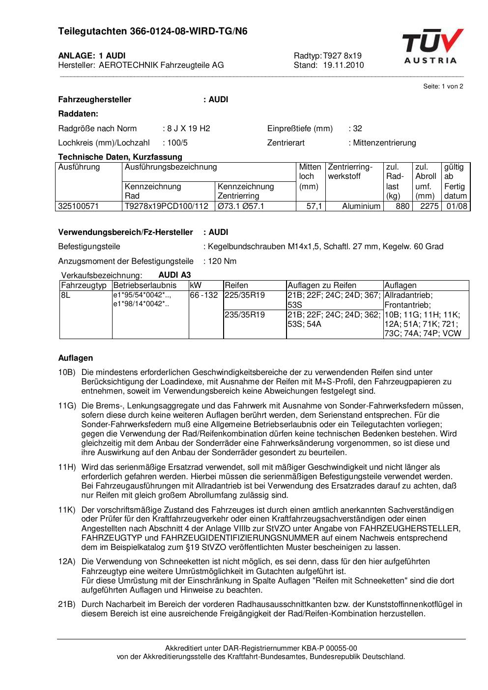 teilegutachten 366-0124-08-wird-tg-n6 AEROTECHNIK T927 8x19