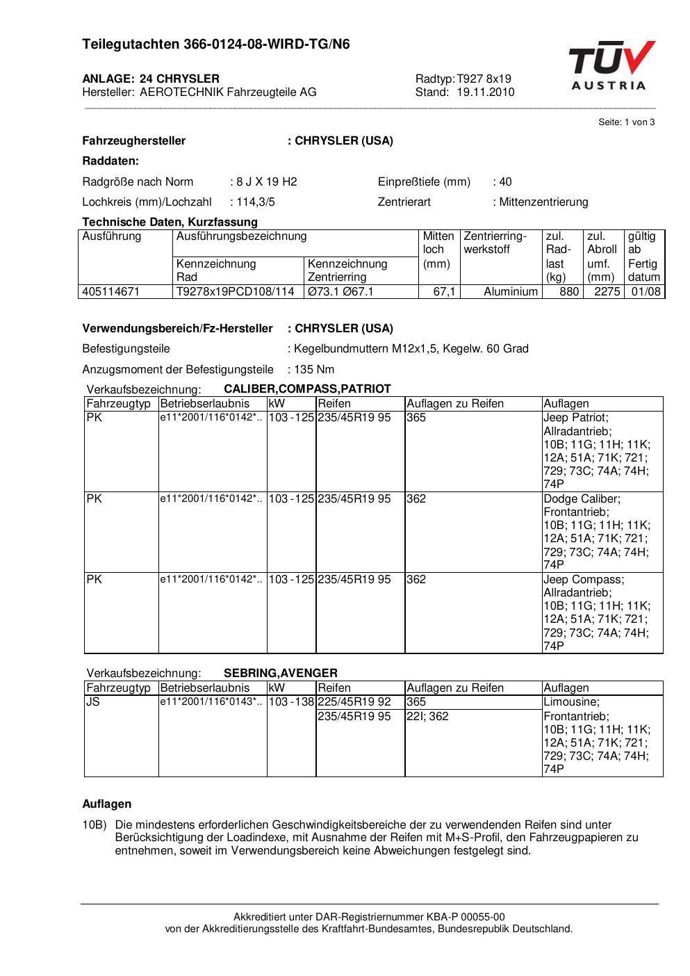 teilegutachten 366-0124-08-wird-tg-n6 AEROTECHNIK T927 8x19