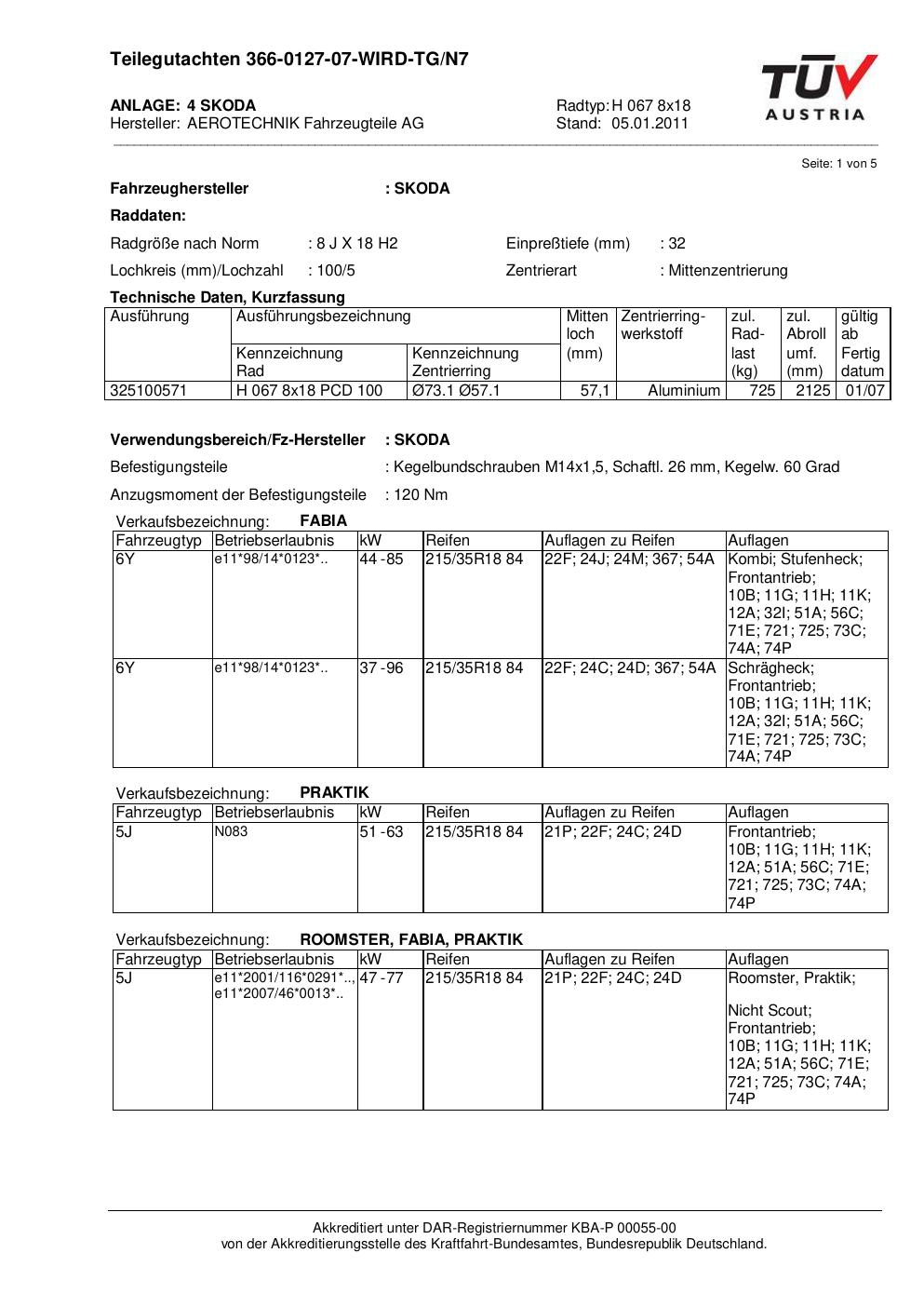 teilegutachten 366-0127-07 AEROTECHNIK H 067 8x18