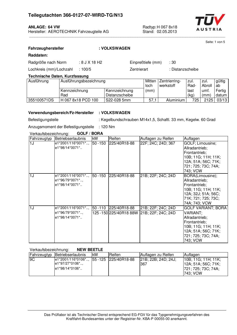 teilegutachten 366-0127-07 AEROTECHNIK H 067 8x18