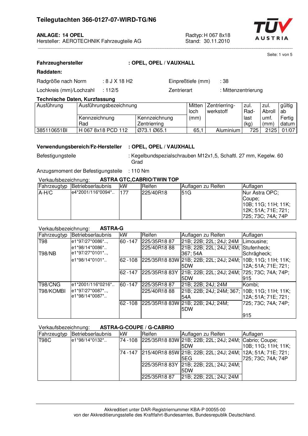 teilegutachten 366-0127-07 AEROTECHNIK H 067 8x18