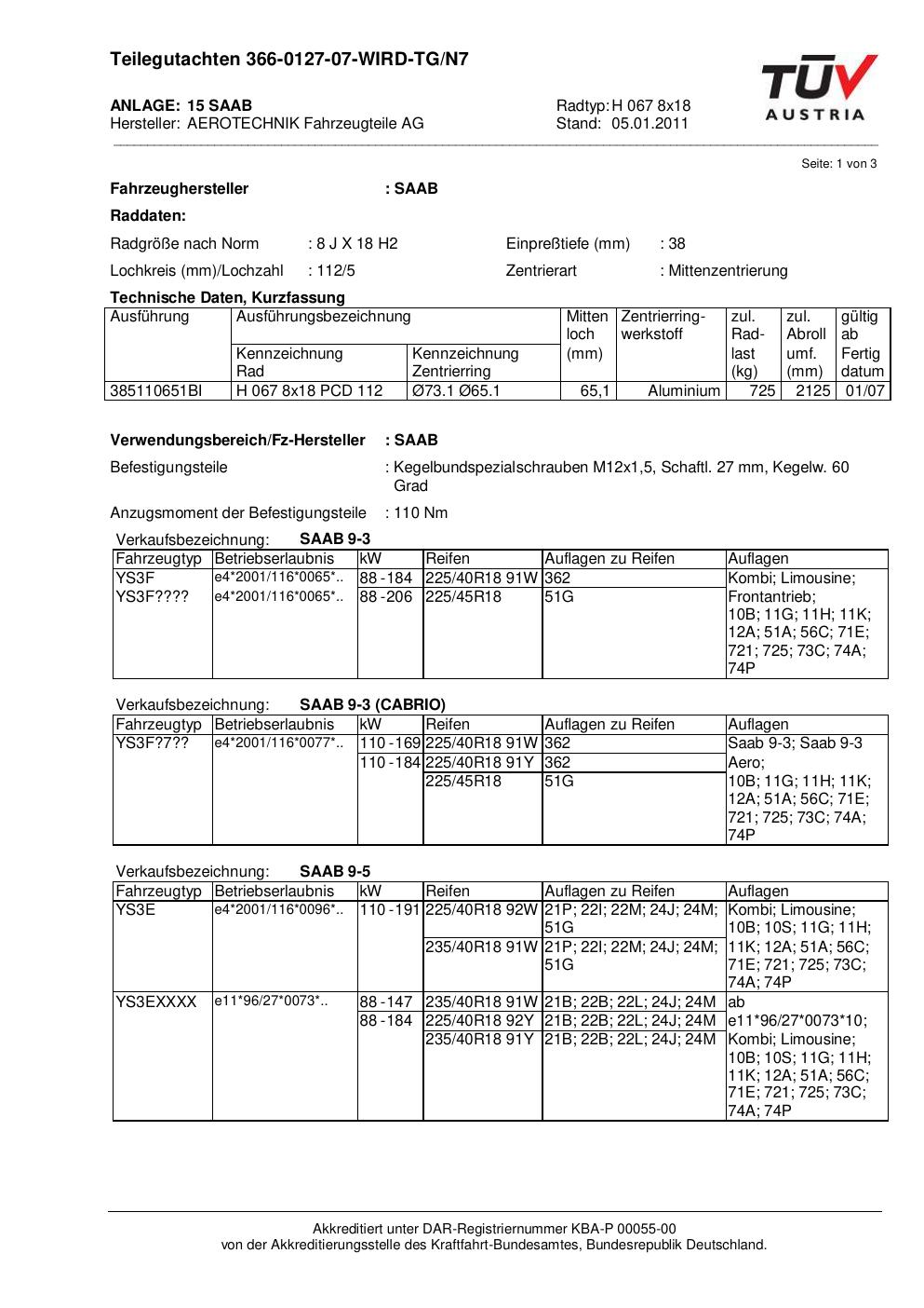 teilegutachten 366-0127-07 AEROTECHNIK H 067 8x18