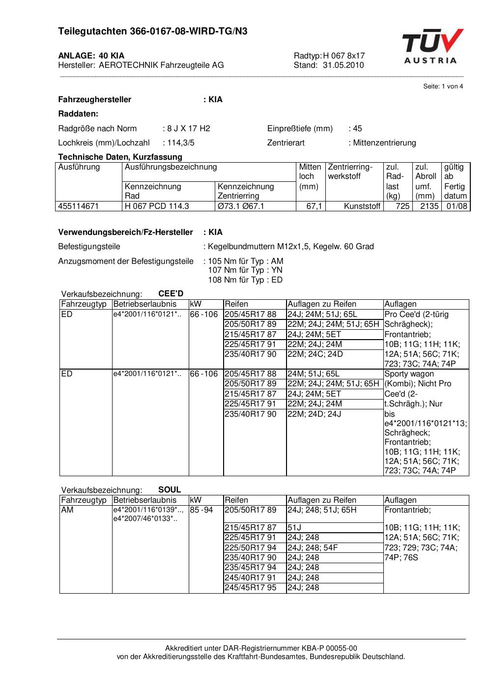 teilegutachten 366-0167-08 AEROTECHNIK H 067 8x17