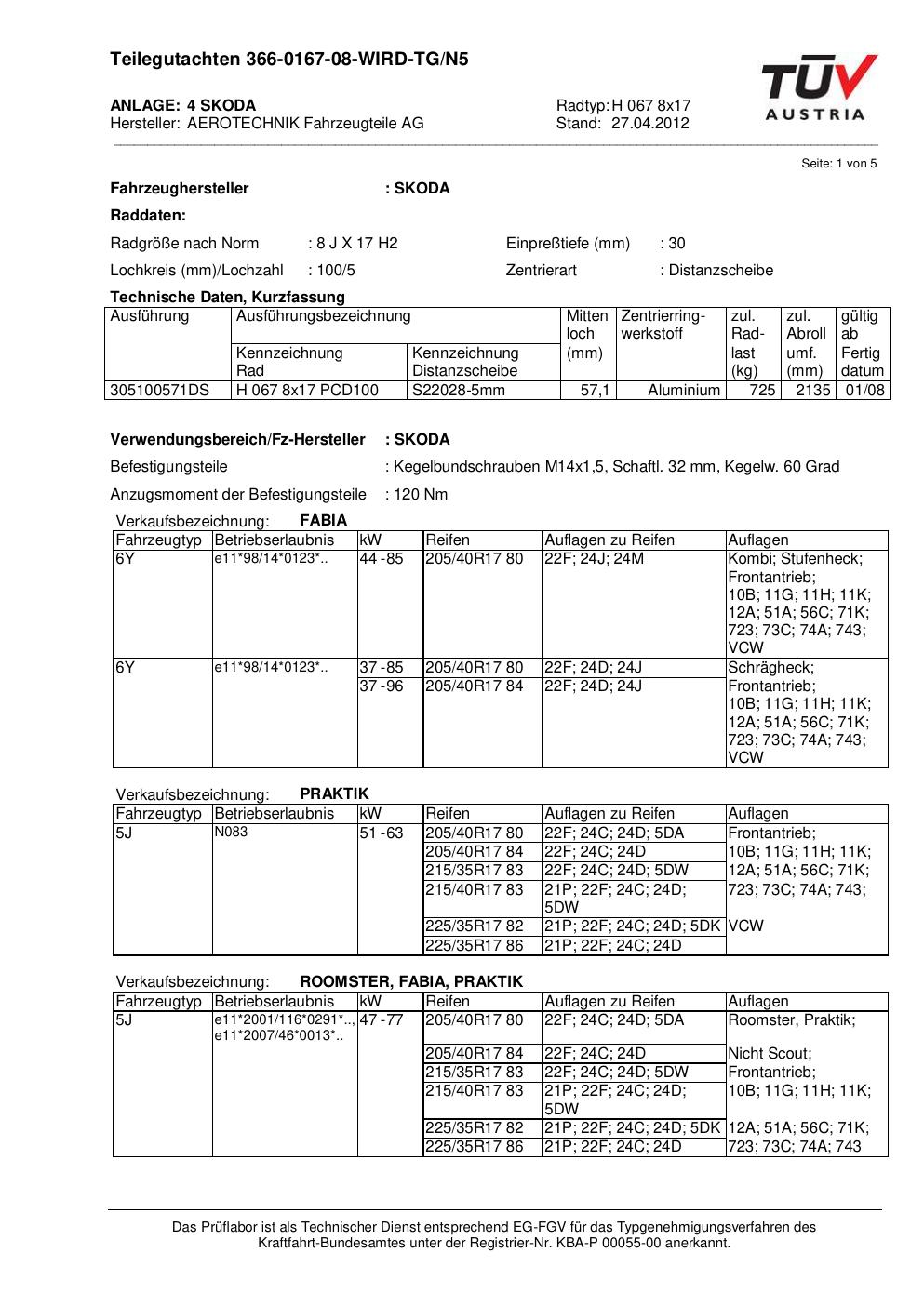 teilegutachten 366-0167-08 AEROTECHNIK H 067 8x17