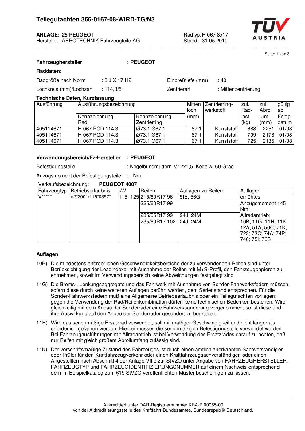 teilegutachten 366-0167-08 AEROTECHNIK H 067 8x17