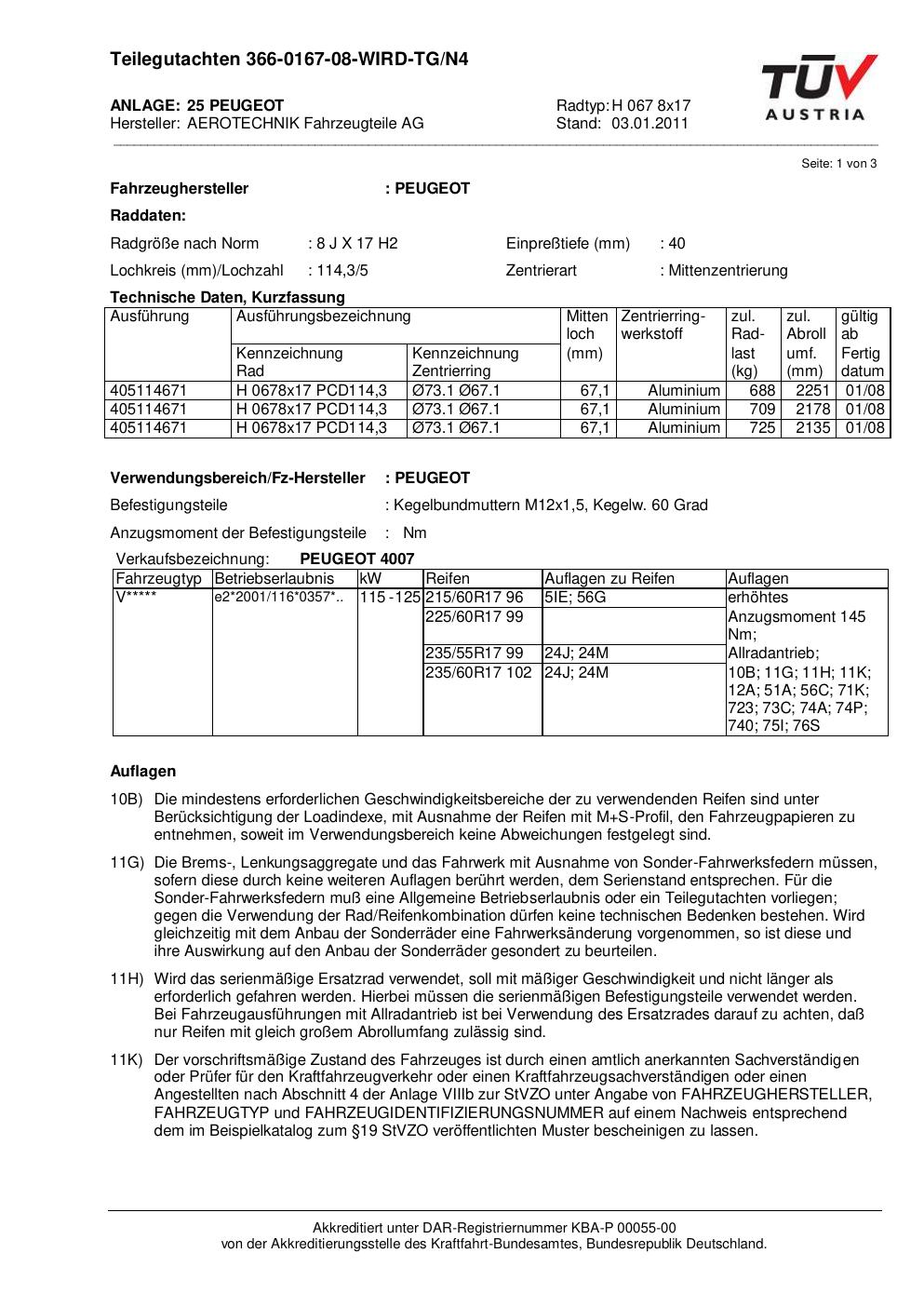 teilegutachten 366-0167-08 AEROTECHNIK H 067 8x17