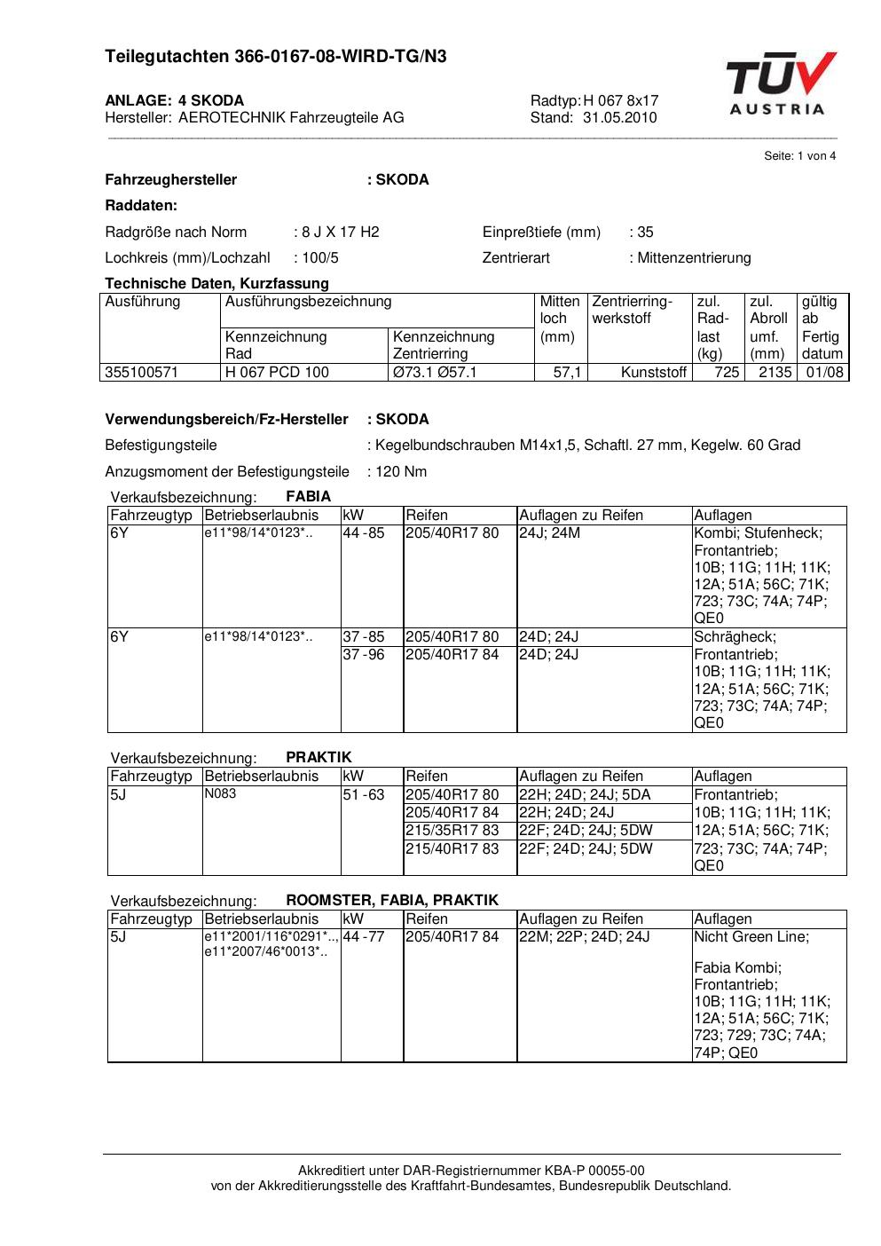 teilegutachten 366-0167-08 AEROTECHNIK H 067 8x17