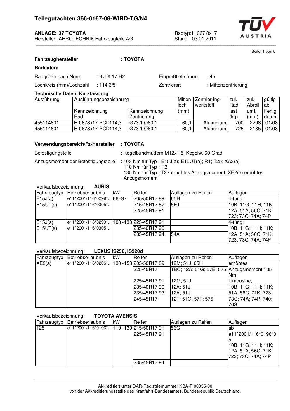 teilegutachten 366-0167-08 AEROTECHNIK H 067 8x17