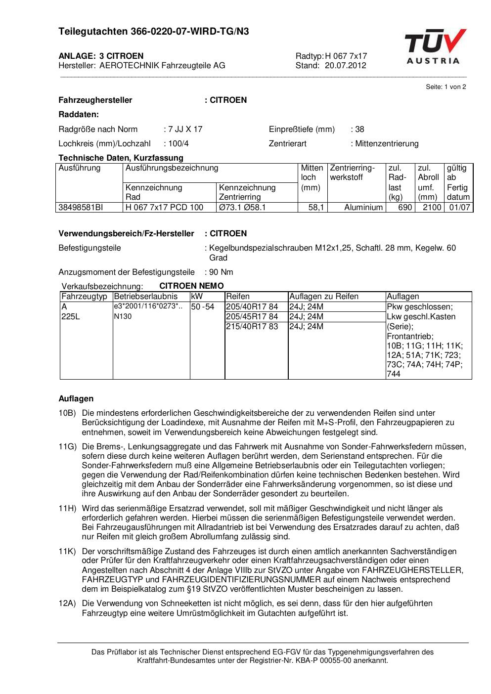 teilegutachten 366-0220-07 AEROTECHNIK H 067 7x17