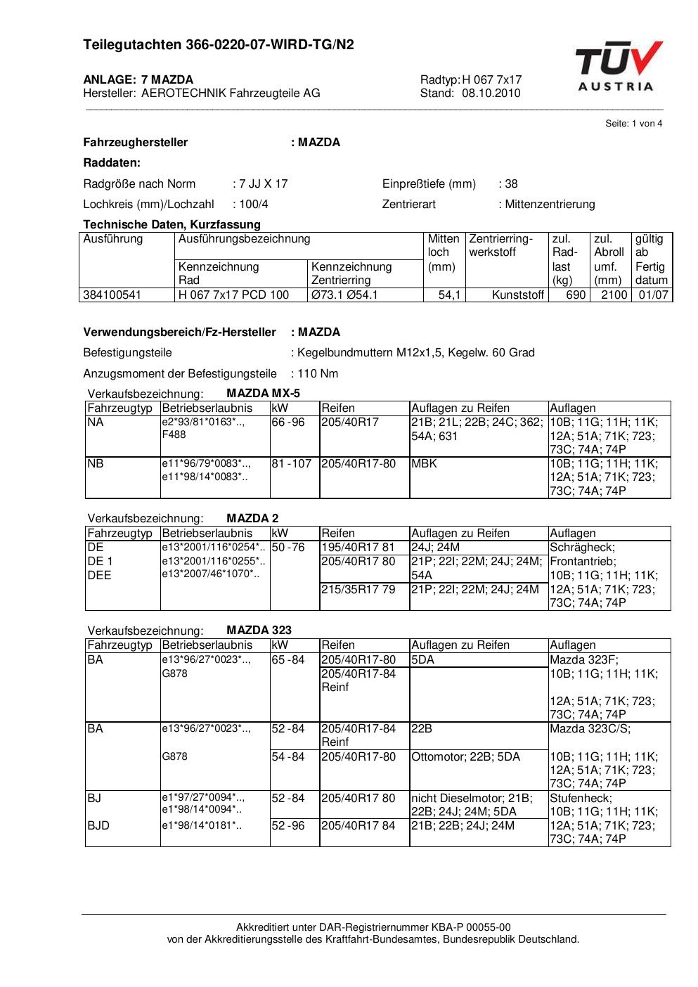 teilegutachten 366-0220-07 AEROTECHNIK H 067 7x17