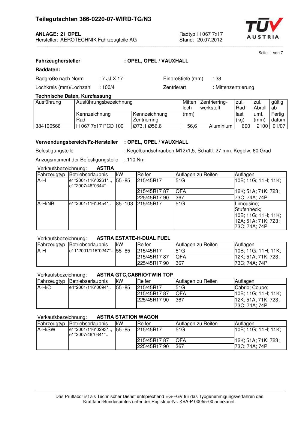 teilegutachten 366-0220-07 AEROTECHNIK H 067 7x17