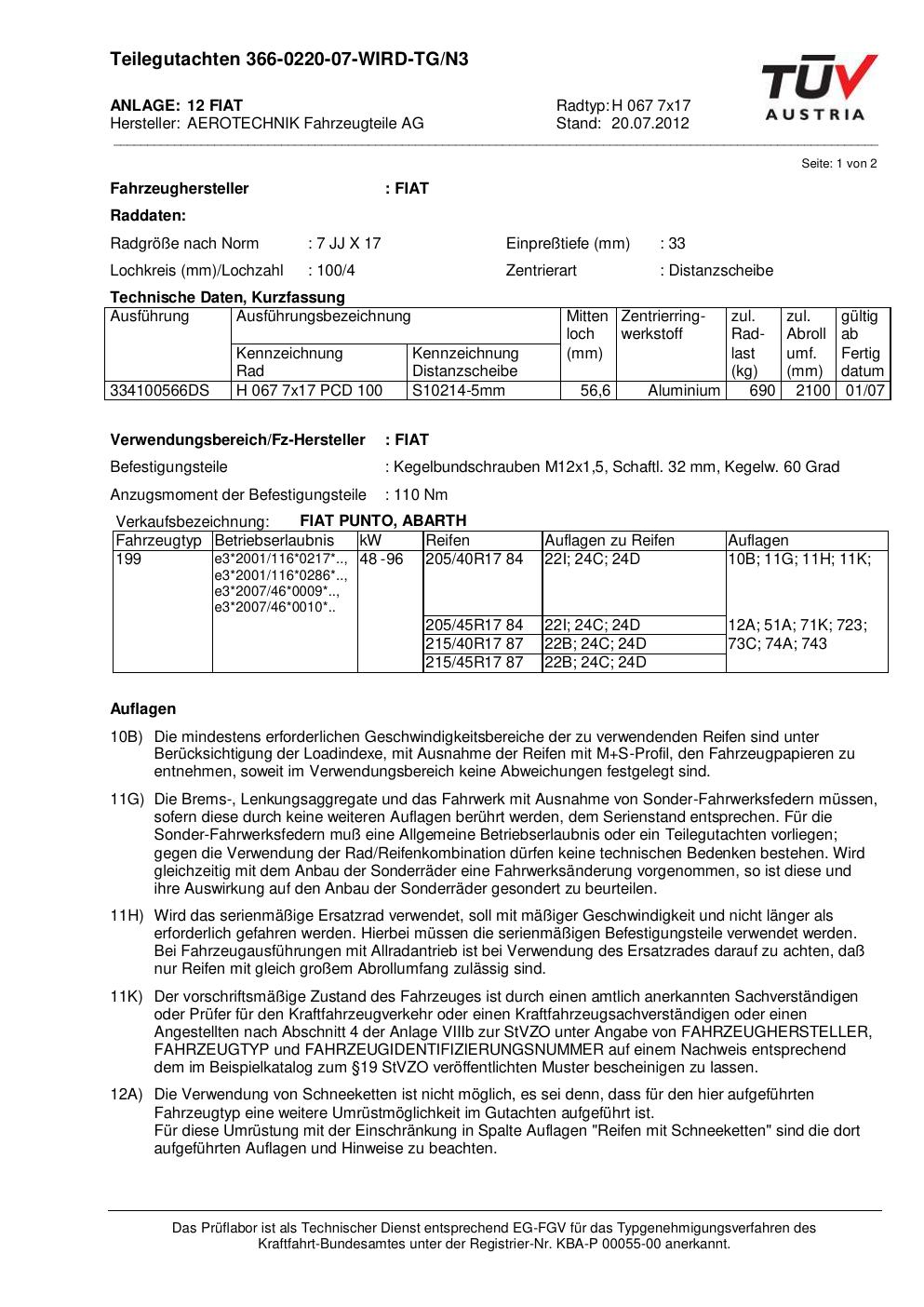 teilegutachten 366-0220-07 AEROTECHNIK H 067 7x17