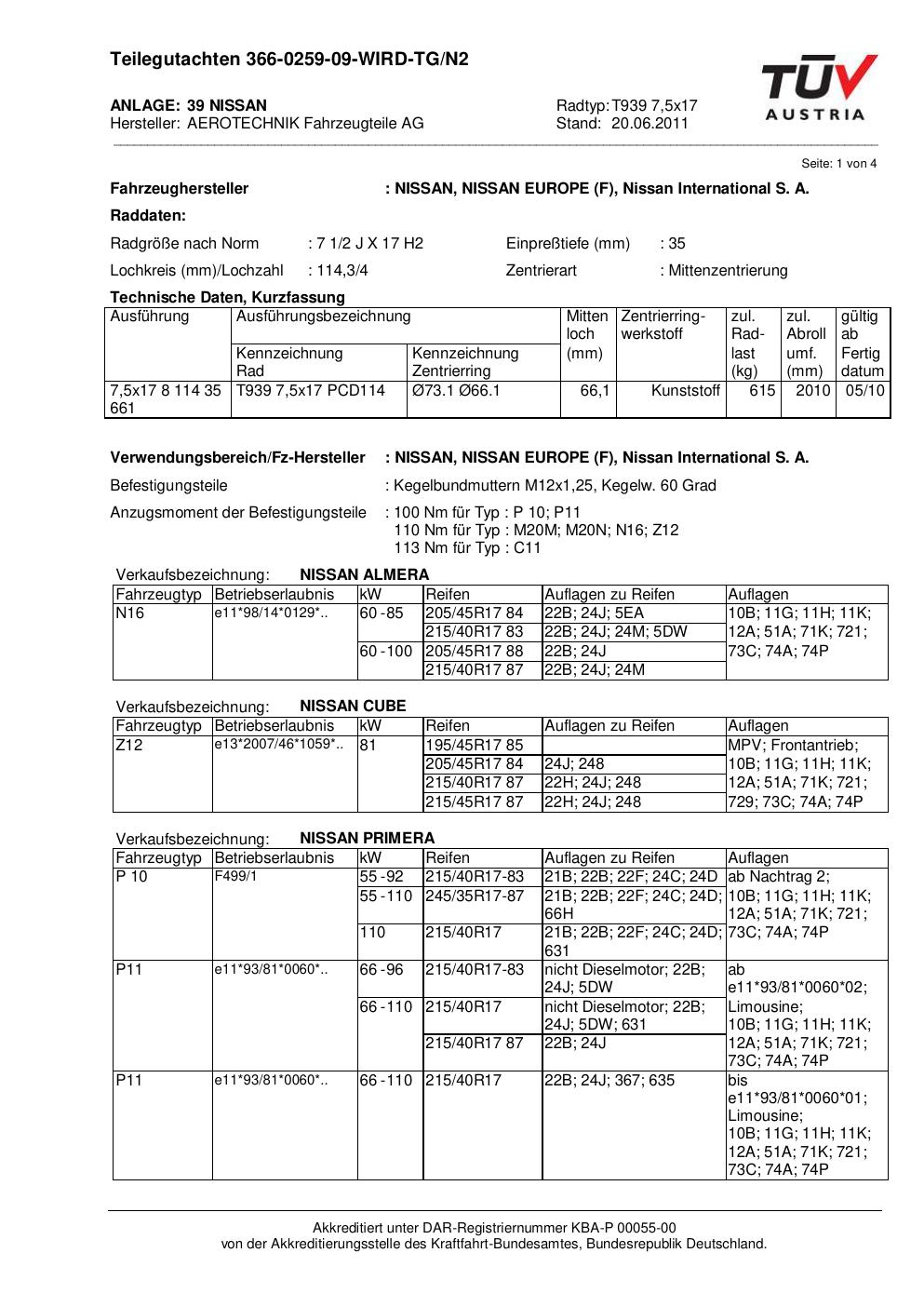 • Stimmt die KBA-Nummer auf der Felge mit diesem Dokument überein?