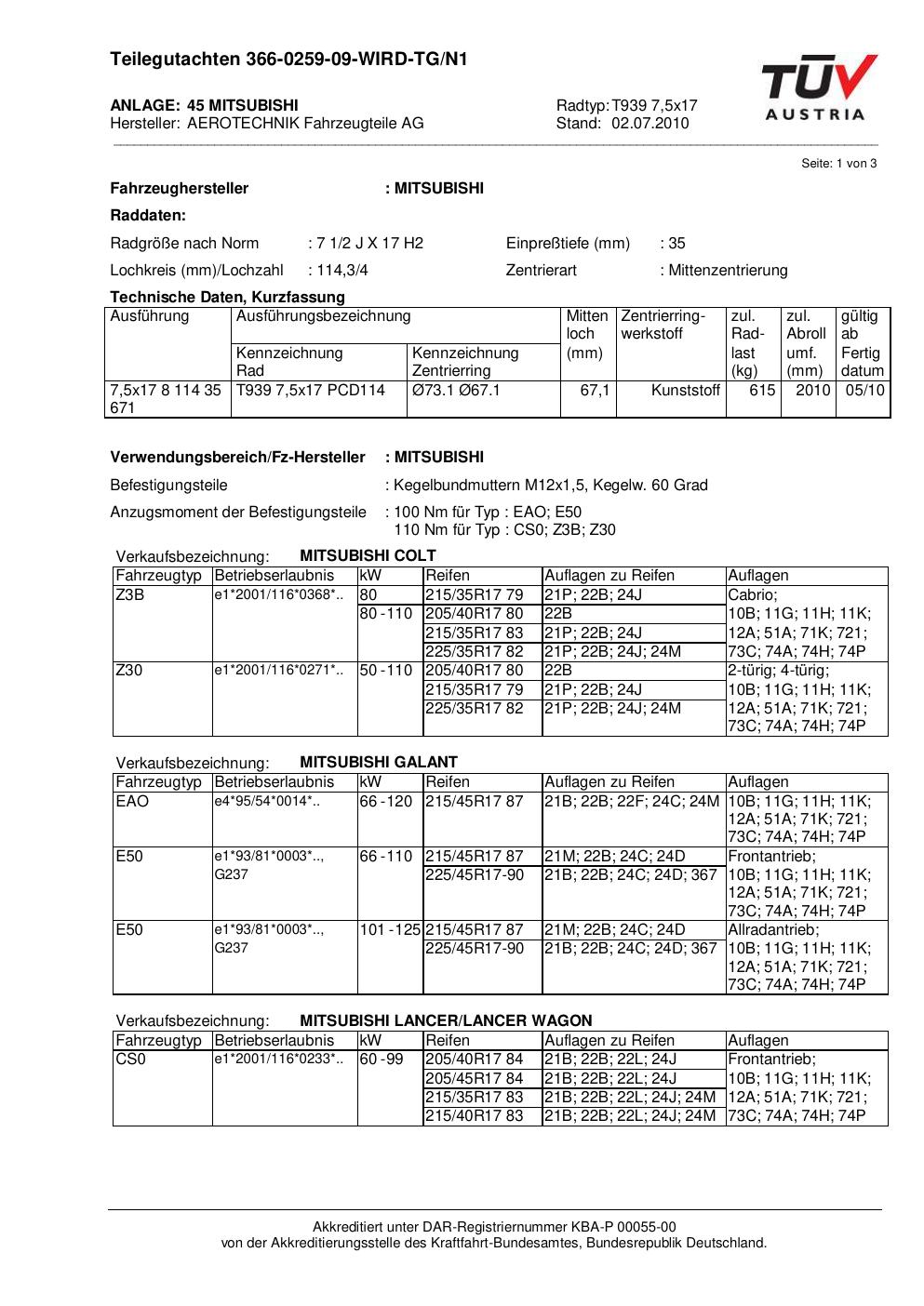 teilegutachten 366-0259-09-wird-tg-n1 AEROTECHNIK T939 7,5x17