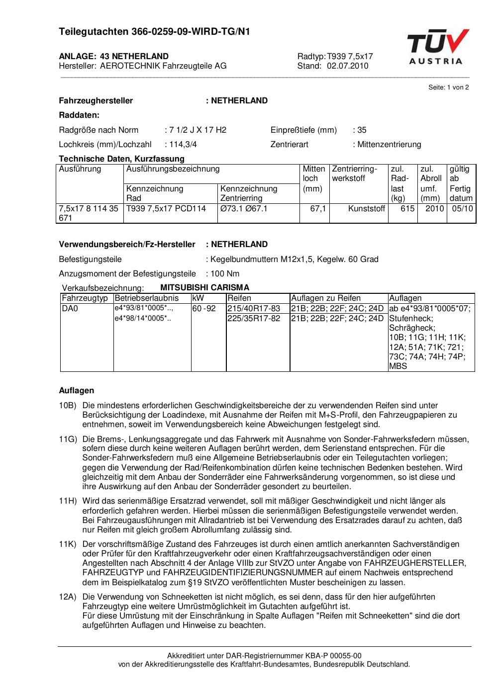 teilegutachten 366-0259-09-wird-tg-n1 AEROTECHNIK T939 7,5x17