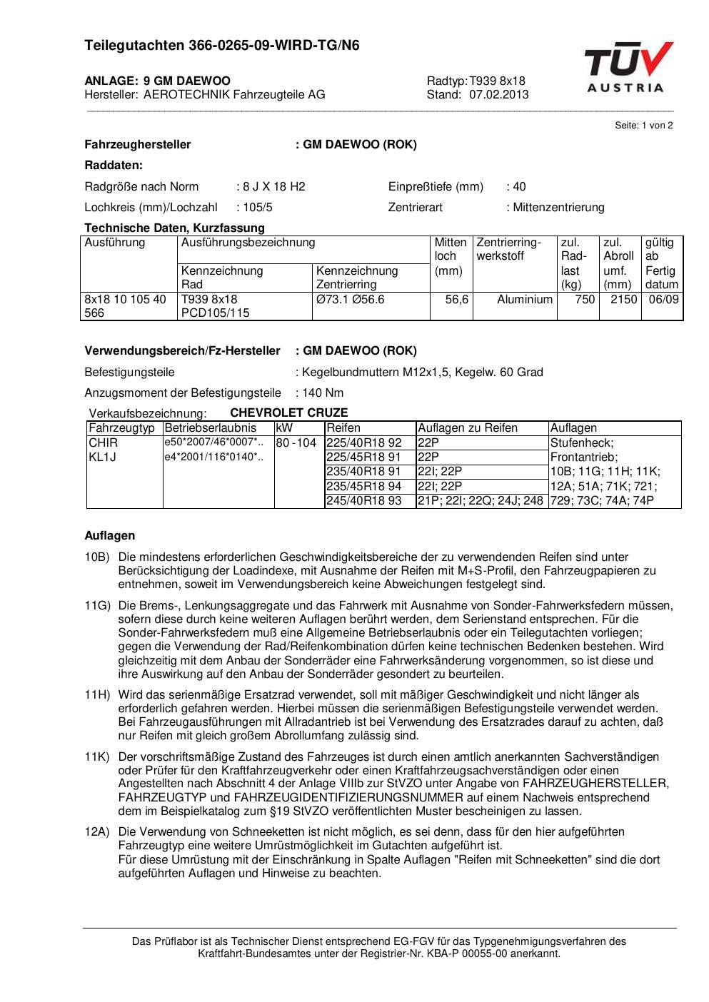 teilegutachten 366-0265-09-wird-tg-n6 AEROTECHNIK T939 8x18