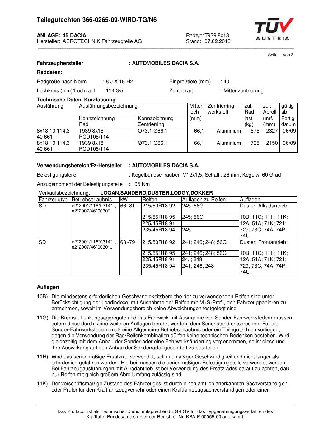 teilegutachten 366-0265-09-wird-tg-n6 AEROTECHNIK T939 8x18