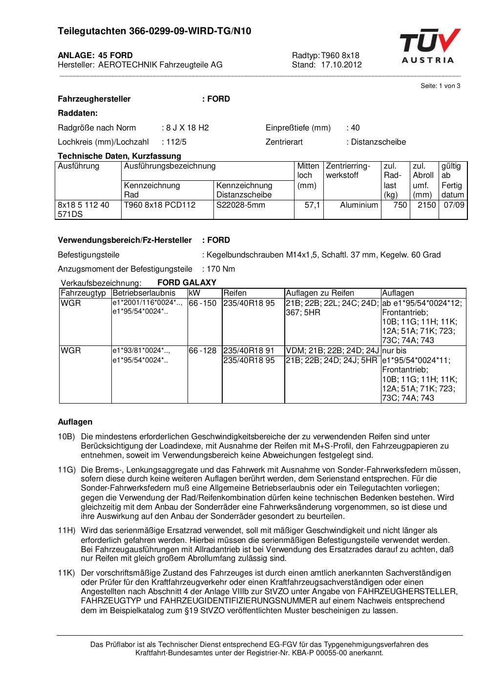 teilegutachten 366-0299-09 AEROTECHNIK T960 8x18