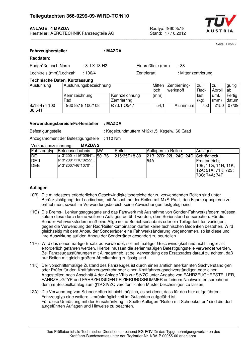 teilegutachten 366-0299-09 AEROTECHNIK T960 8x18