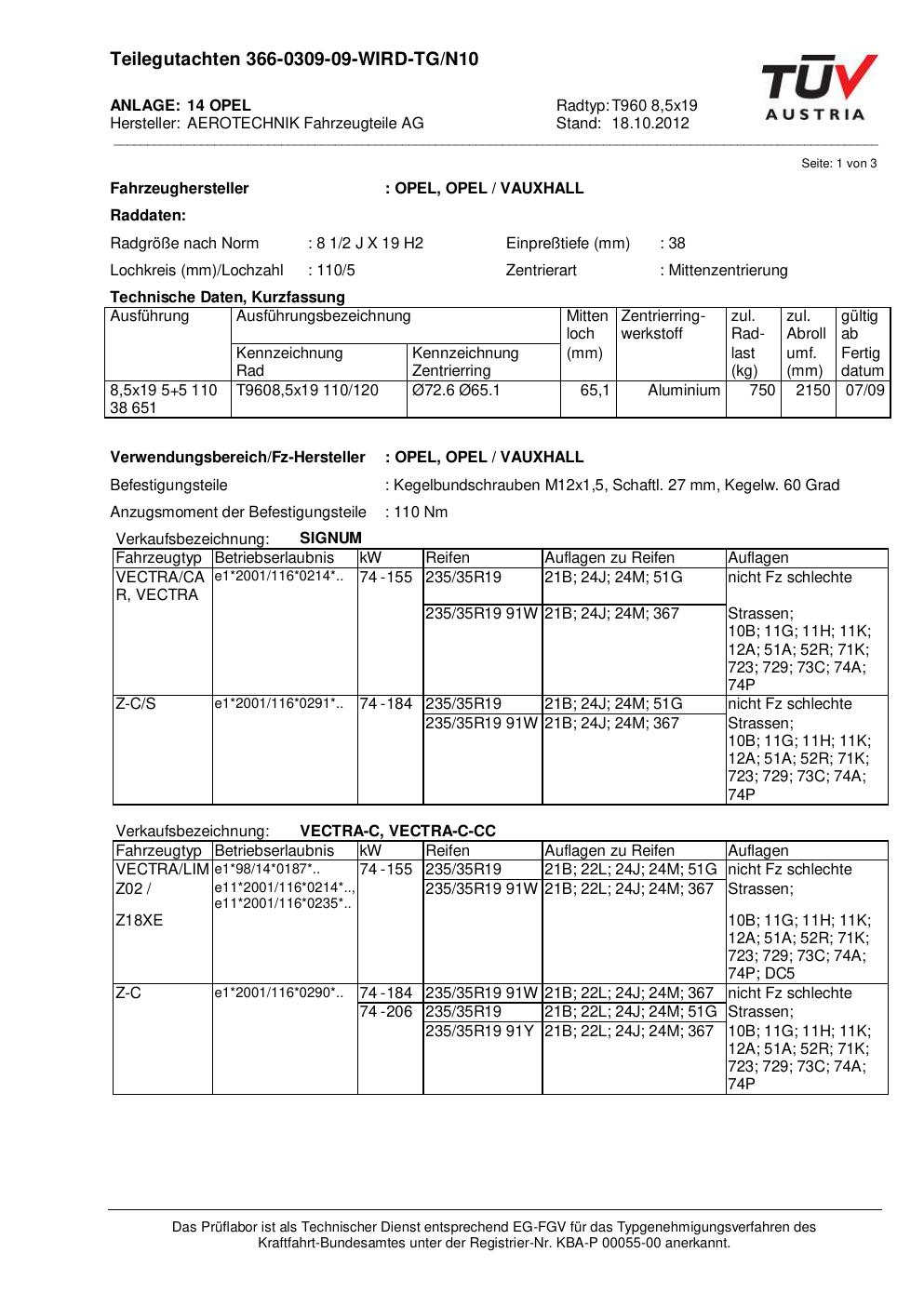 teilegutachten 366-0309-09 AEROTECHNIK T960 8,5x19