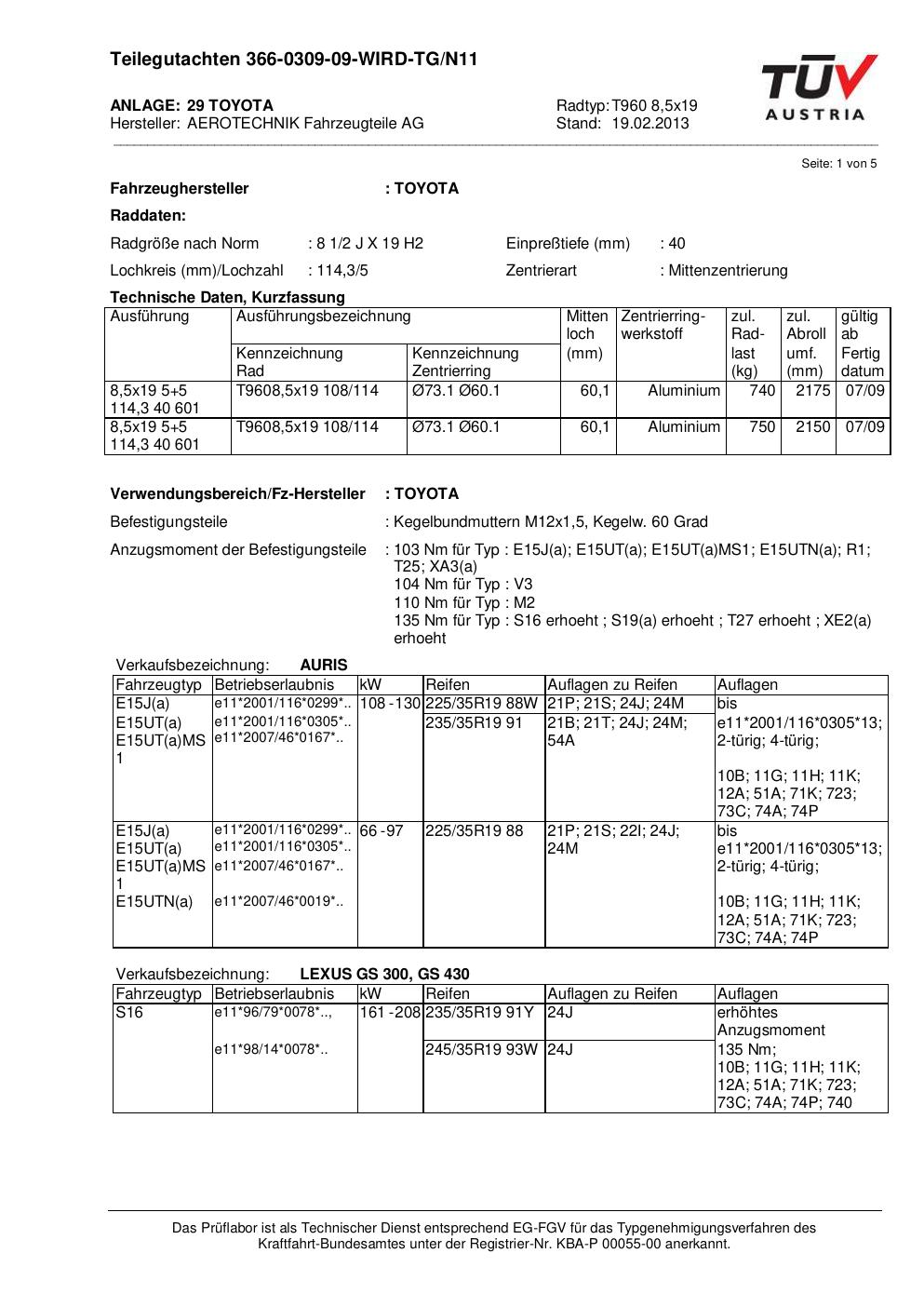teilegutachten 366-0309-09 AEROTECHNIK T960 8,5x19