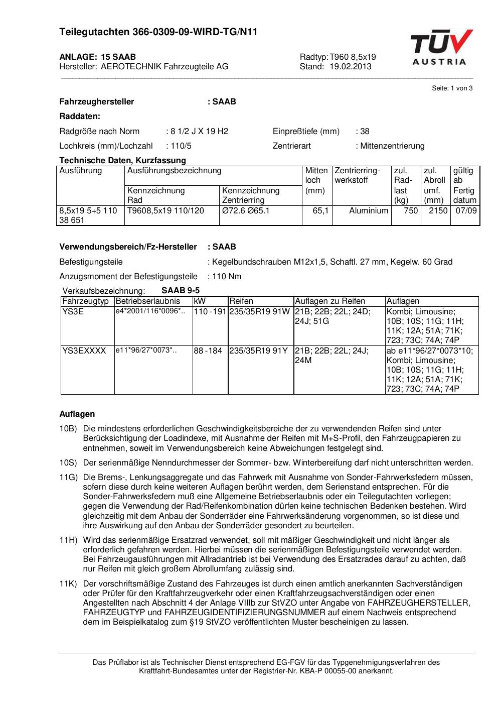 teilegutachten 366-0309-09 AEROTECHNIK T960 8,5x19