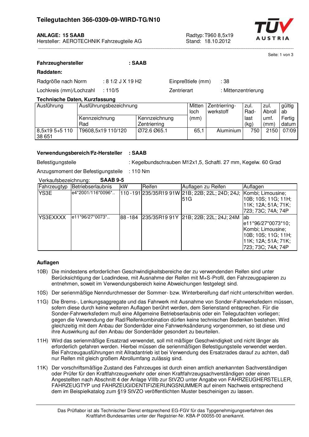 teilegutachten 366-0309-09 AEROTECHNIK T960 8,5x19
