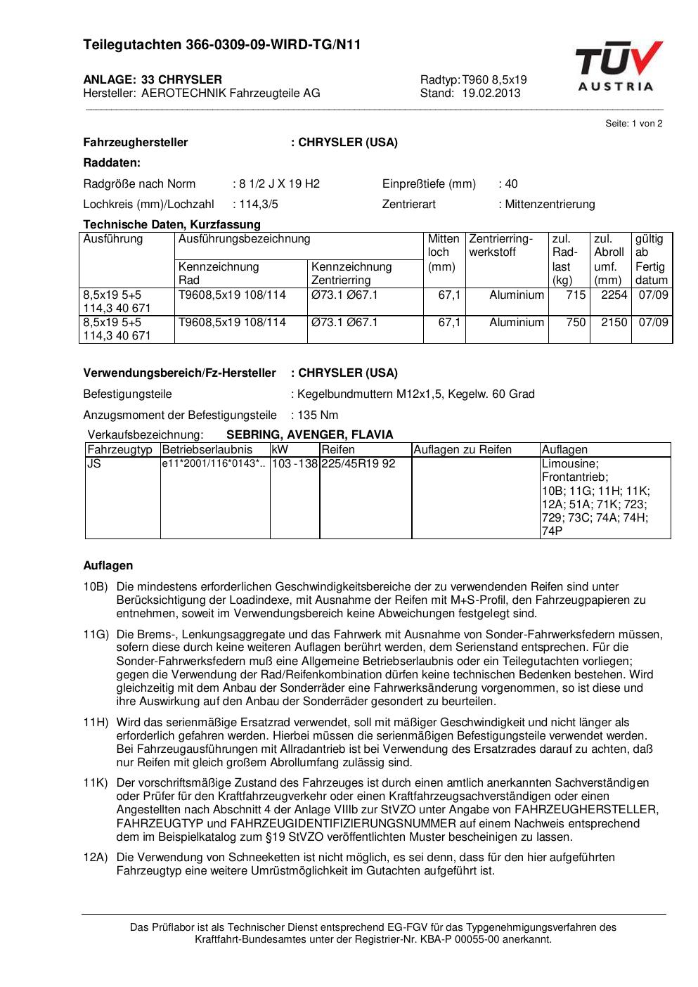 teilegutachten 366-0309-09-wird-tg-n11 AEROTECHNIK T960 8,5x19