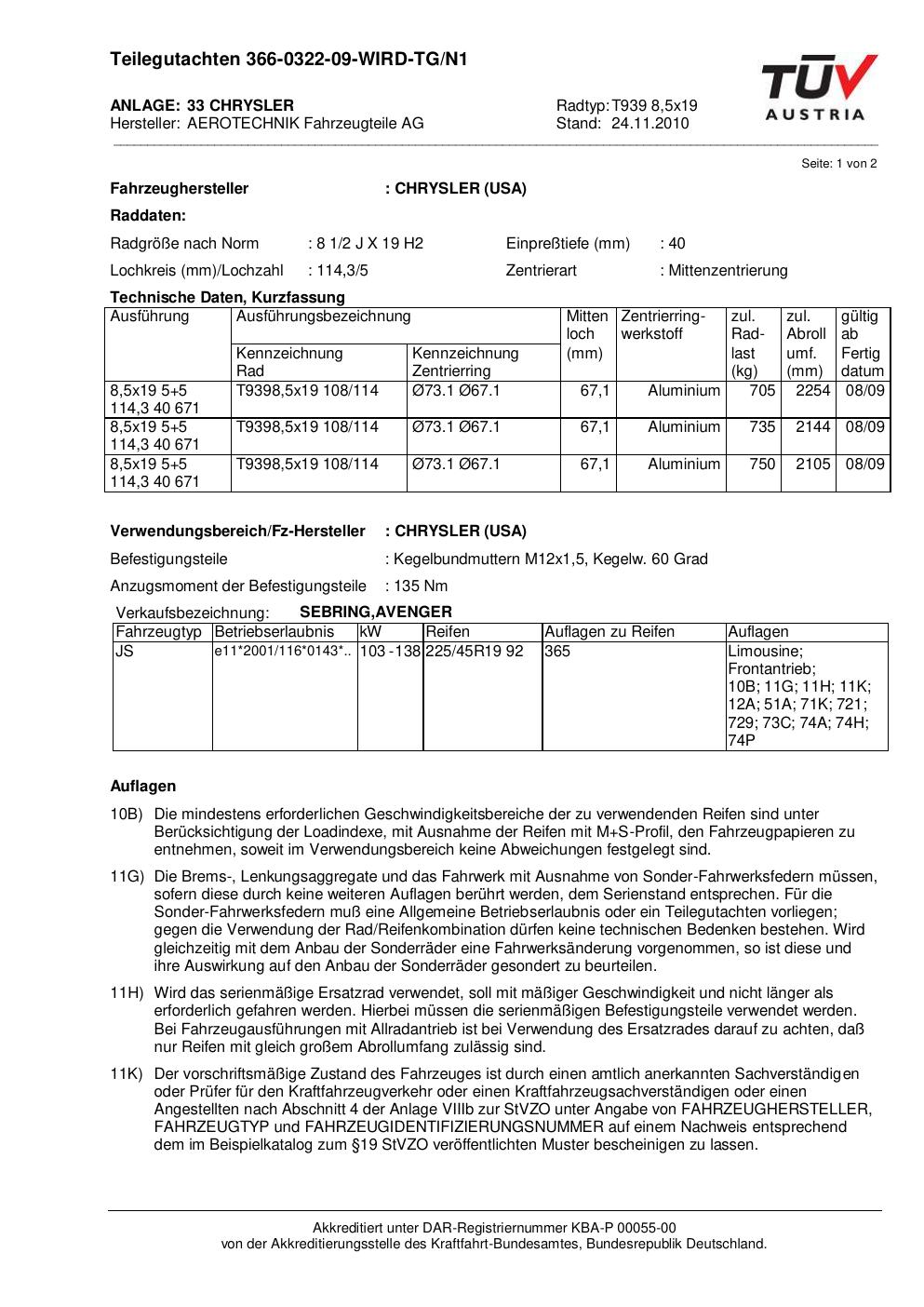 teilegutachten 366-0322-09 AEROTECHNIK T939 8,5x19