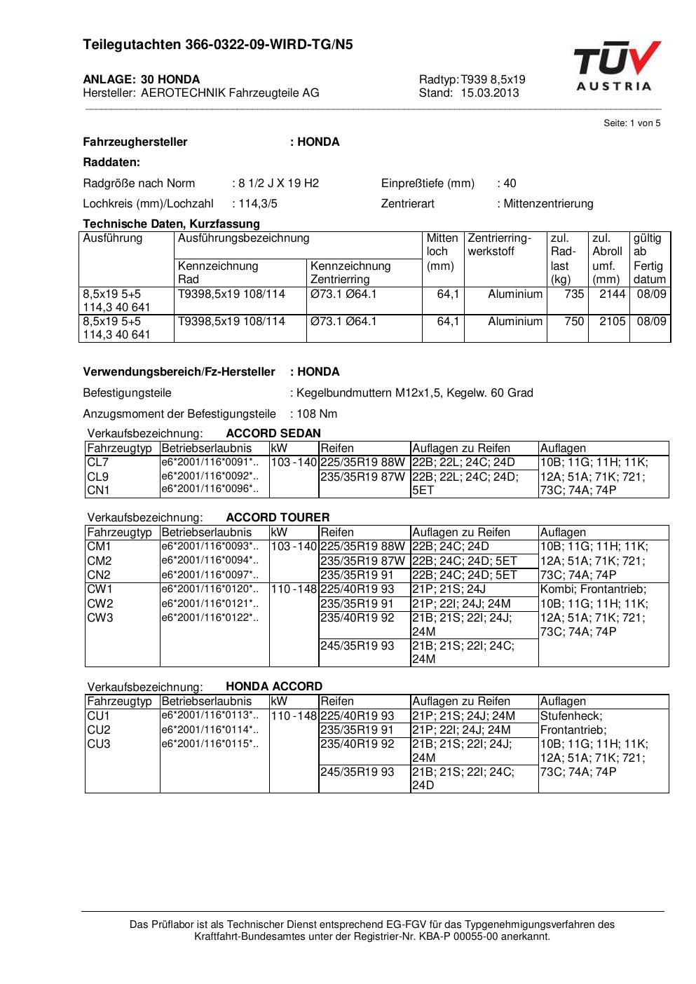 teilegutachten 366-0322-09 AEROTECHNIK T939 8,5x19