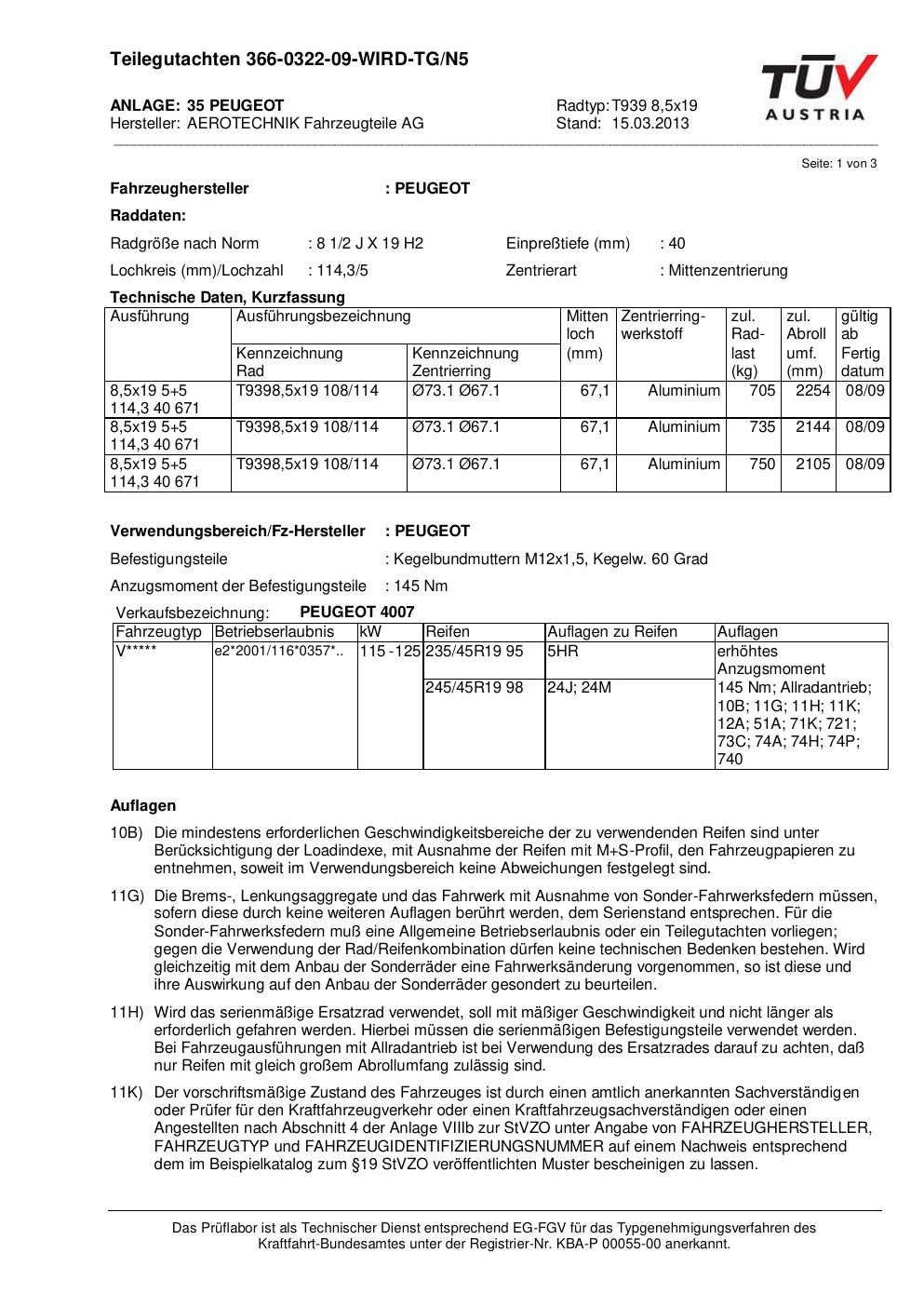 teilegutachten 366-0322-09 AEROTECHNIK T939 8,5x19