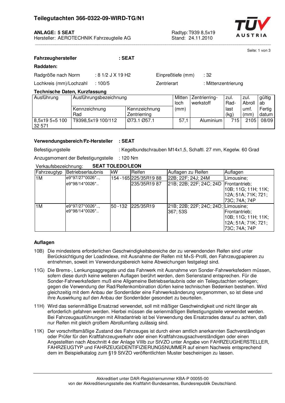 teilegutachten 366-0322-09-wird-tg-n1 AEROTECHNIK T939 8,5x19