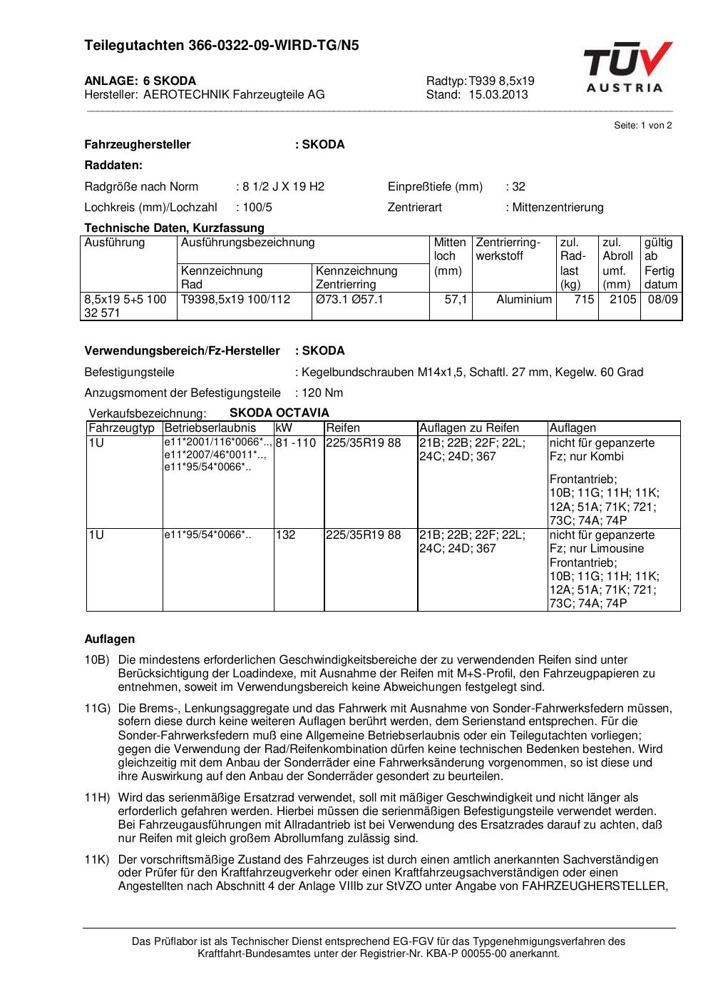 teilegutachten 366-0322-09-wird-tg-n5 AEROTECHNIK T939 8,5x19