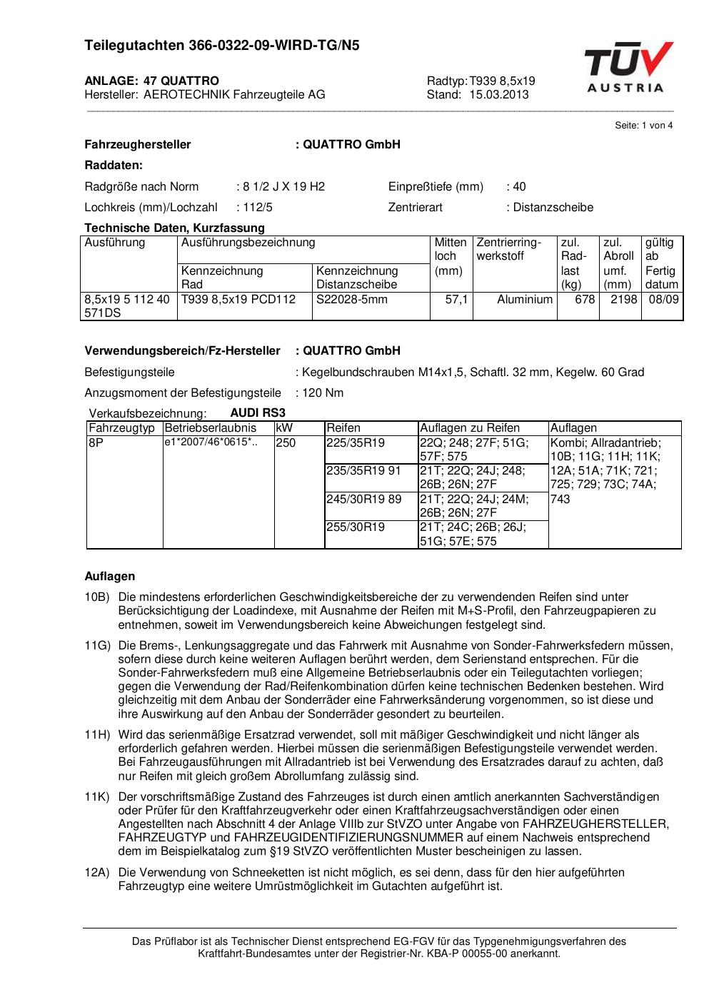 teilegutachten 366-0322-09-wird-tg-n5 AEROTECHNIK T939 8,5x19